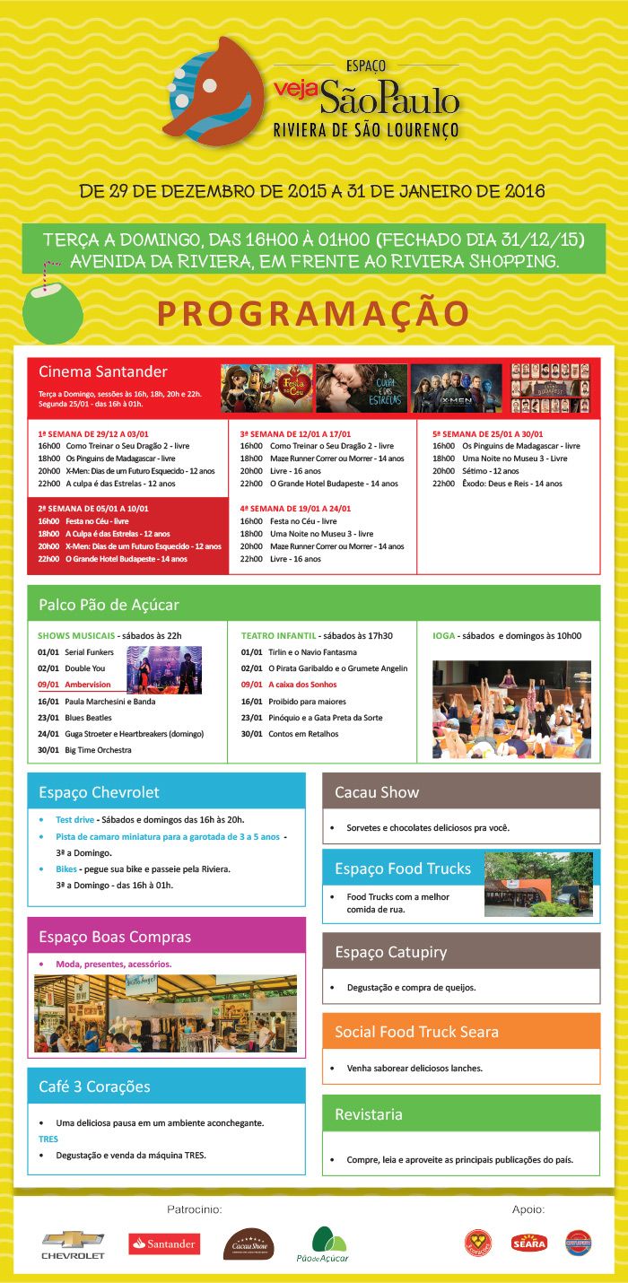 De 26 de dezembro a 31 de janeiro de 2016. Diariamente das 16h à 00h.