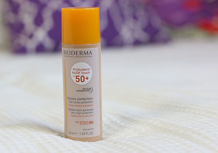 Este é um protetor solar com cor, mas acho que também funciona bem em peles oleosas. O protetor é bastante líquido, fácil de espalhar e me pareceu cobrir de uma forma bem boa as manchinhas da pele. Logo que seca, ele deixa a pele sem brilho, mas não chega a ser completamente opaco. Não tem cheiro de protetor solar. Ele está disponível em 4 tons: Ivory, Peach ( que foi o que eu comprei), Beige e Bronze.